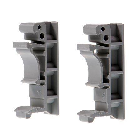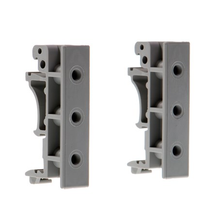 Lightweight snap-on DIN rail clip enables secure mounting of wall-mountable enclosures onto 35mm and 32mm DIN rails.