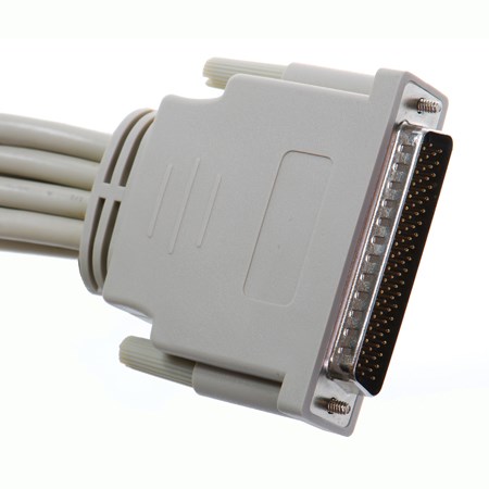 High density Lynx breakout cable featuring a 78 Way D-type connector to 8x 9 Pin (DB9) connectors.