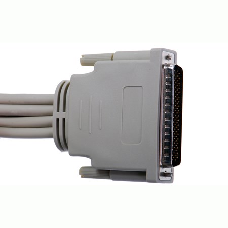 High density Lynx breakout cable featuring a 78 Way D-type connector to 8x 25 Pin (DB25) connectors.