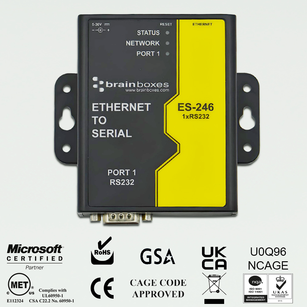 Our ES range provides simple instant networked serial ports. A web interface allows secure configuration and control of the serial ports over a local network or the internet using any browser. For Windows our in-house designed (32 bit and 64 bit) driver gives you local COM ports, retaining existing software applications and allowing you to connect across your network to remote devices just as if they were attached locally.