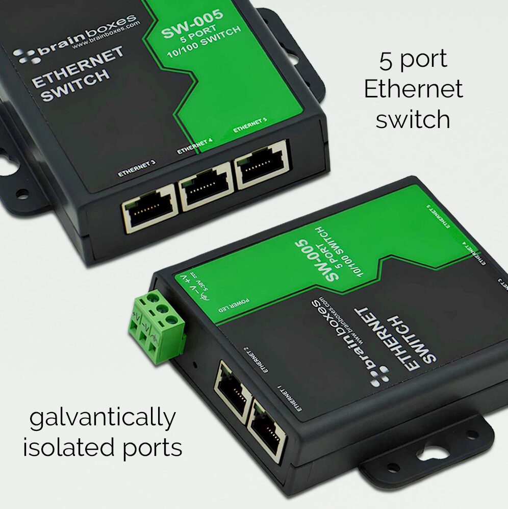 Light Industrial/Commercial Ethernet 5 Port unmanaged switch. Galvanically Isolated Ports. Power supply with wide voltage range means it can be powered from USB or on the 24V factory floor. Power terminal is removable with for easy wiring. Power consumption is optimised based on the status of the link device. No software required. Ideal for factory floor, in vehicle and marine applications. Wall mountable using mounting screw holes, also includes DIN Rail mount accessory (MK-048)