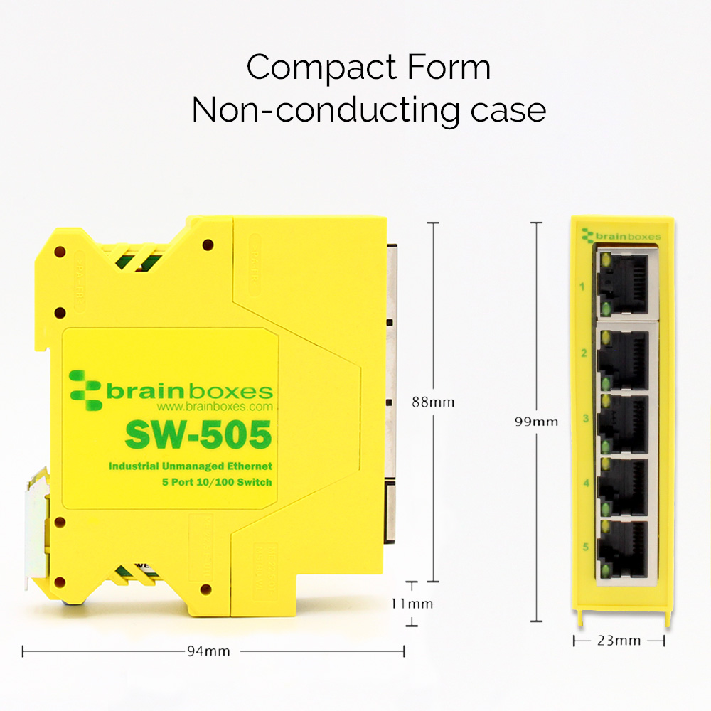 Industrial Compact Ethernet 5 Port unmanaged switch.