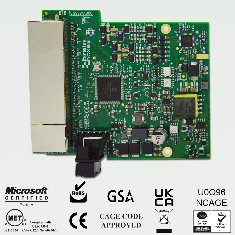 | PoE Ethernet | 4 Ports of PoE Ethernet and 1 Ethernet Interface takes advantage of a companies pre-existing infrastructure, allowing you to connect to your Brainboxes device over the local network, or from across the world, without the need for added power supplies and generators. |