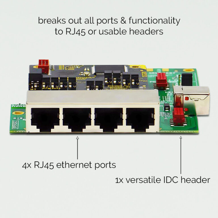 Pure Embedded Industrial Gigabit Ethernet Switch Evaluation Kit – allows easy access to all features of the PE-515* and allows for further testing and debugging within a prototype system before any commitment to custom fixtures or designs is made.