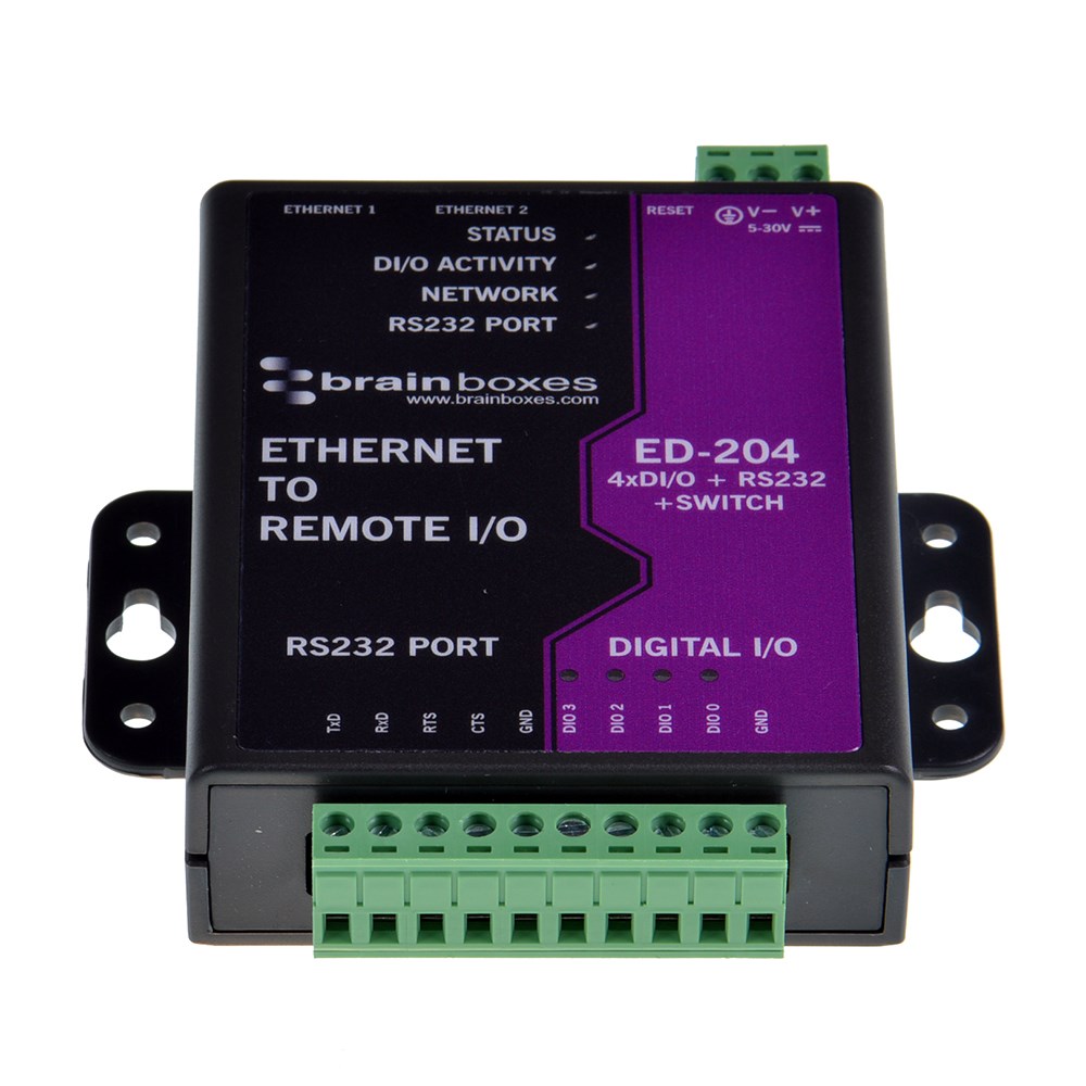 - 4 Digital Inputs/Outputs + RS232 Serial Port + Ethernet Switch